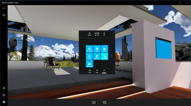 I’m pleasantly surprised that I’m suddenly on the Mixed Reality Portal Shell (the apartment looking room) without having to do additional configuration or user training steps. The voice guide simply asked to press the Windows Key to open the menu and start the Edge browser.