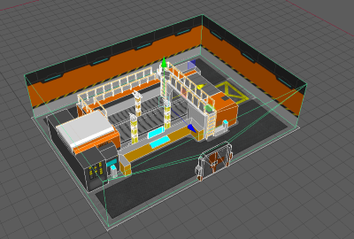 I’ll start with a simple room example — with walls, which ends up blocking the view. A simple solution is to take advantage of backface culling by constructing inner walls facing the room and outer walls that can be enabled as needed.